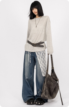 American Retro Hot Girl Lace Patchwork Jeans For Women