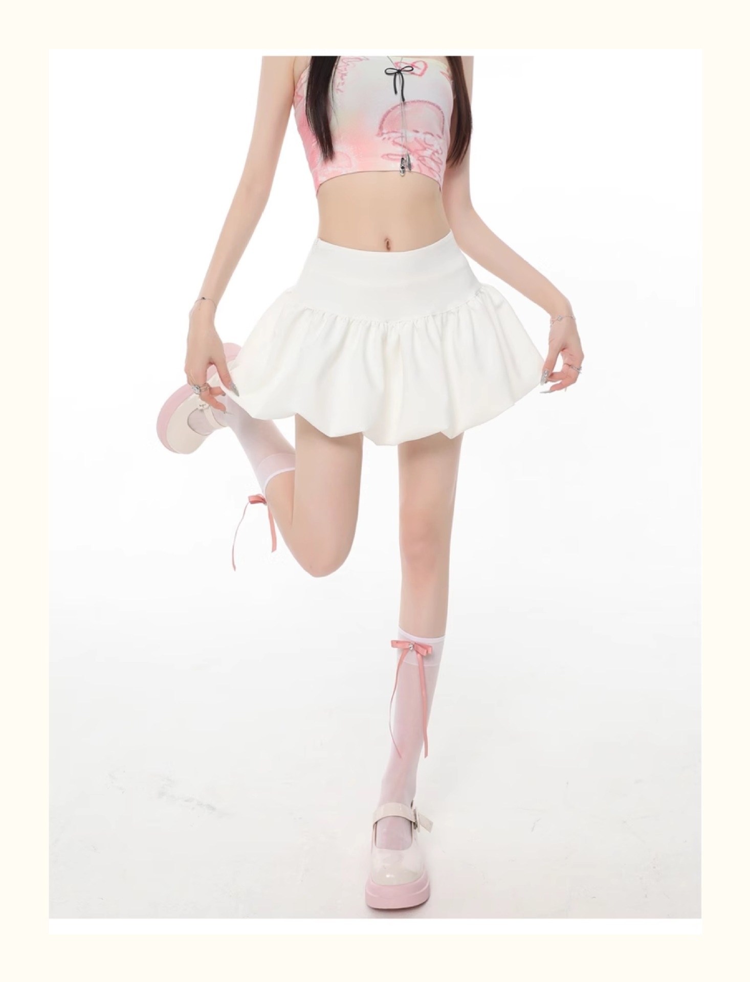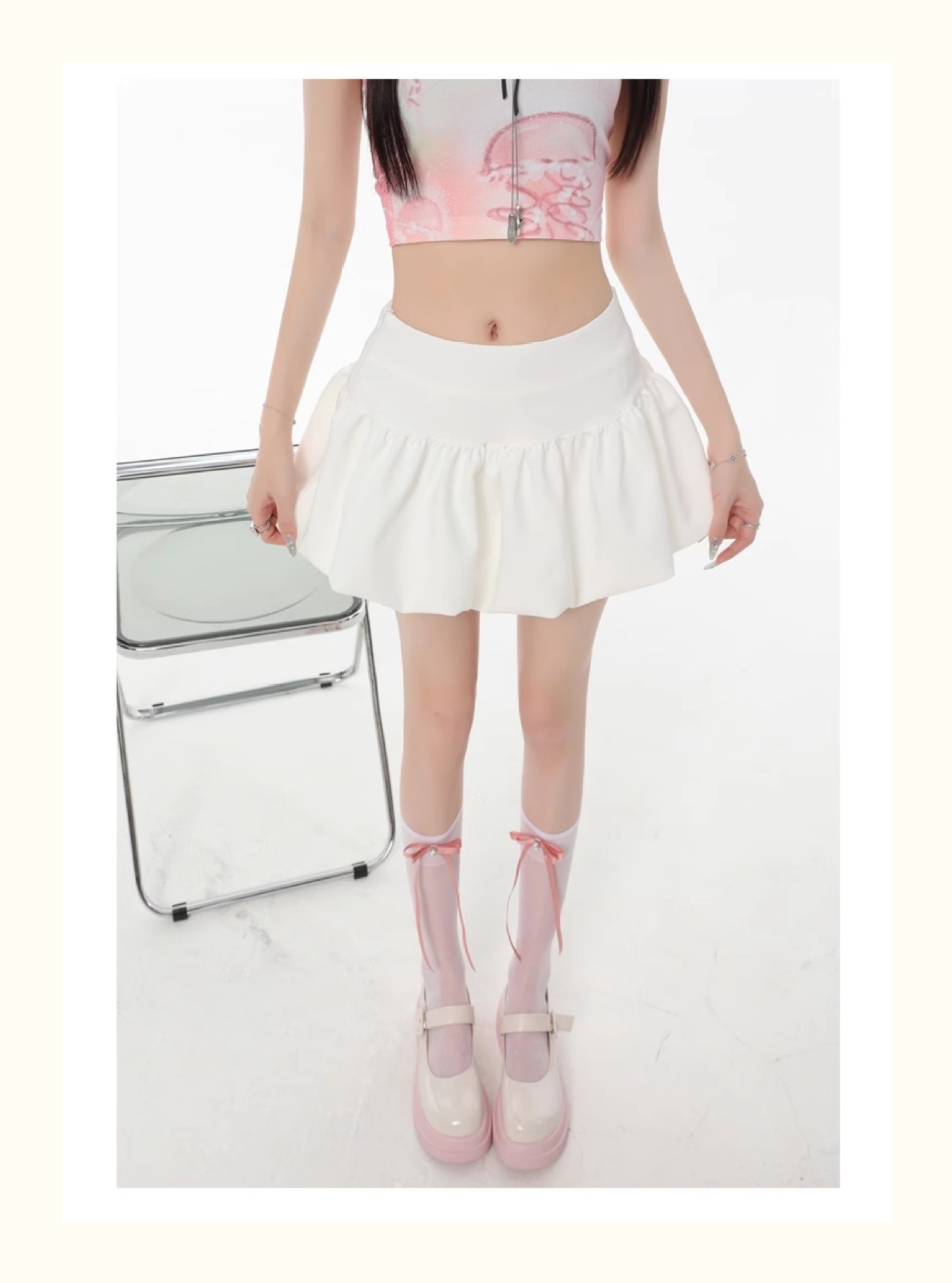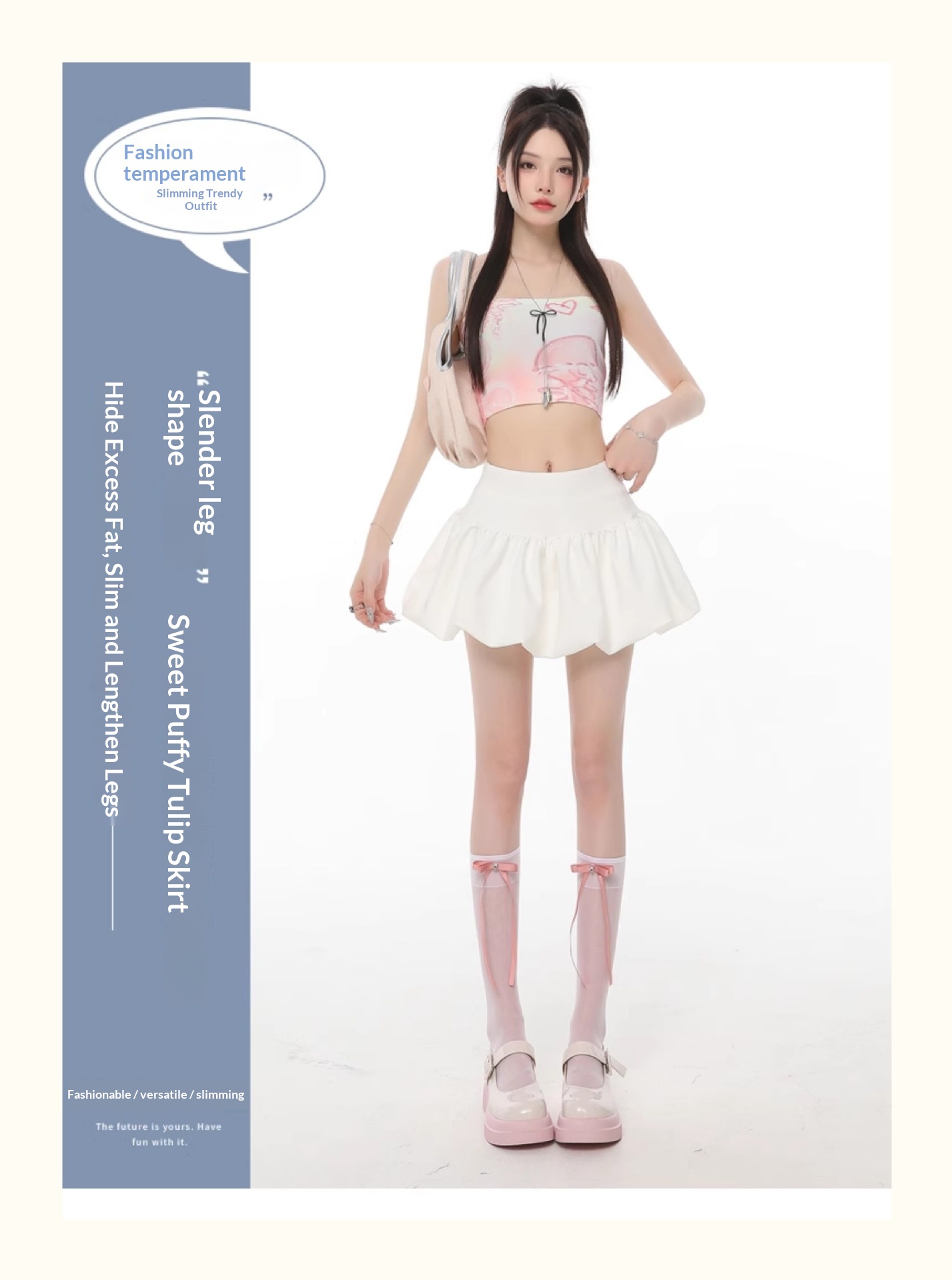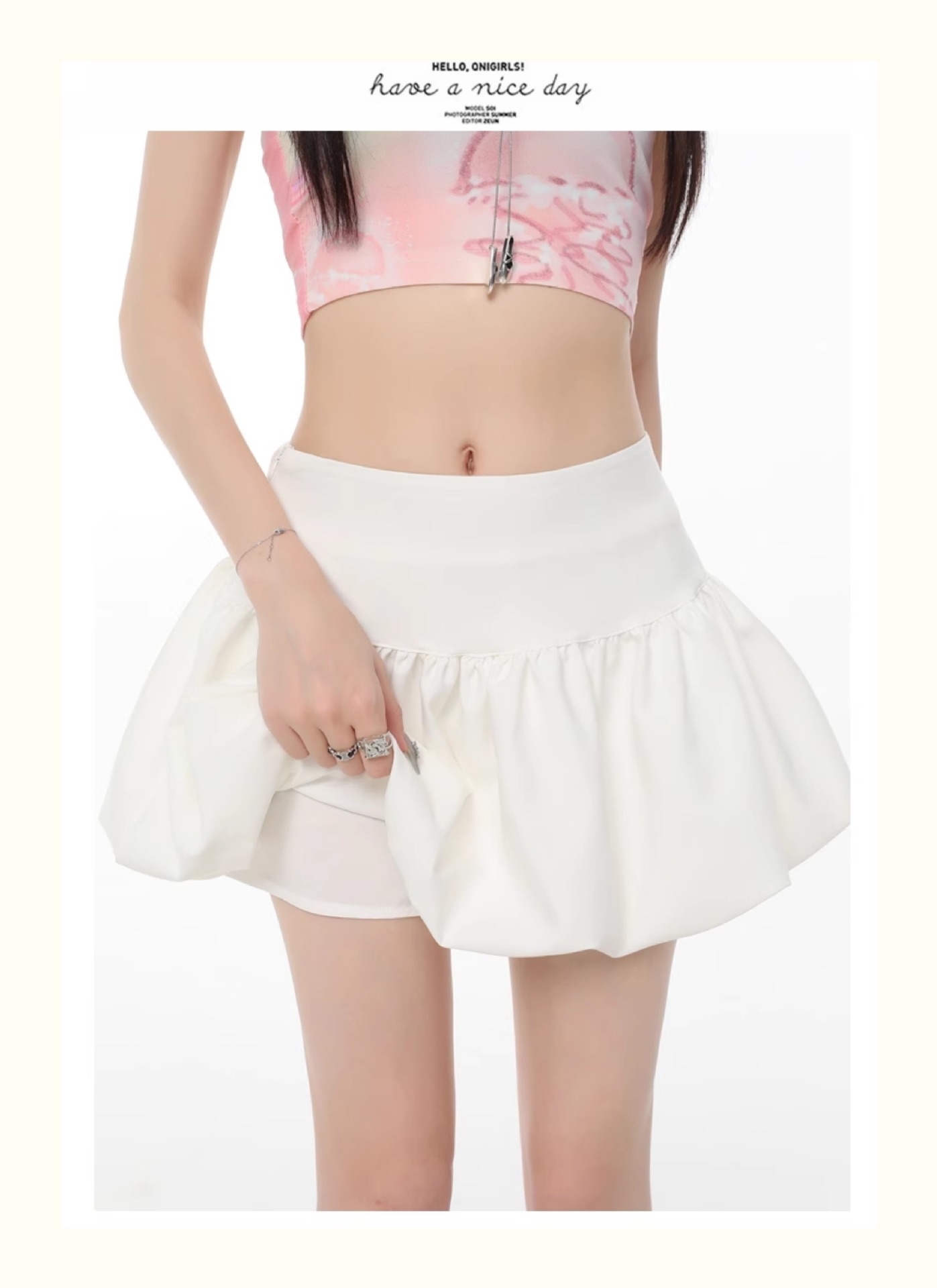Ballet-style White Bud Skirt For Women Sweet And Chic High-waisted A-line Skirt For Summer French-style Fluffy Bubble Skirt