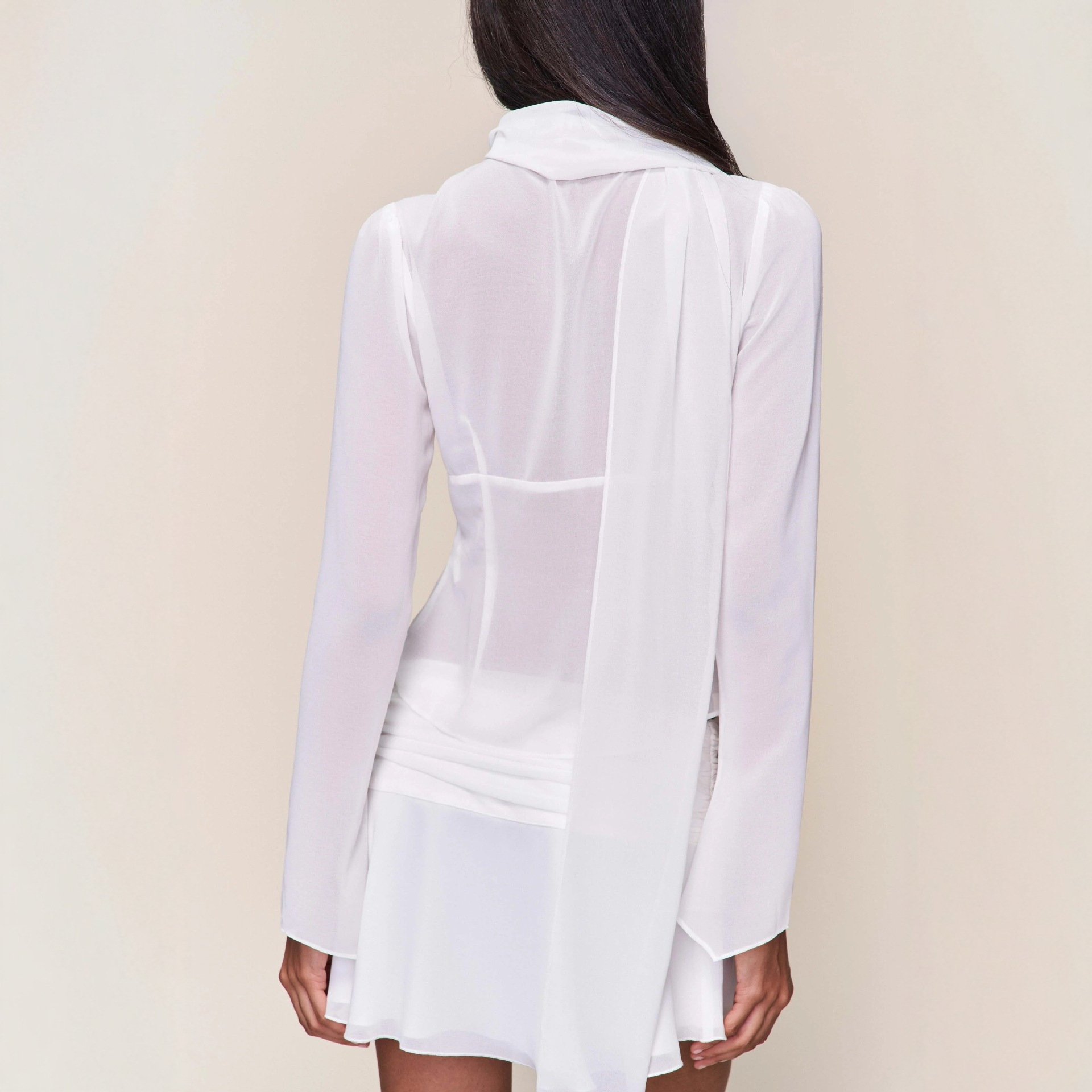 Blouse With Hollow-out Buttons And A Ribbon Tie At The Waist