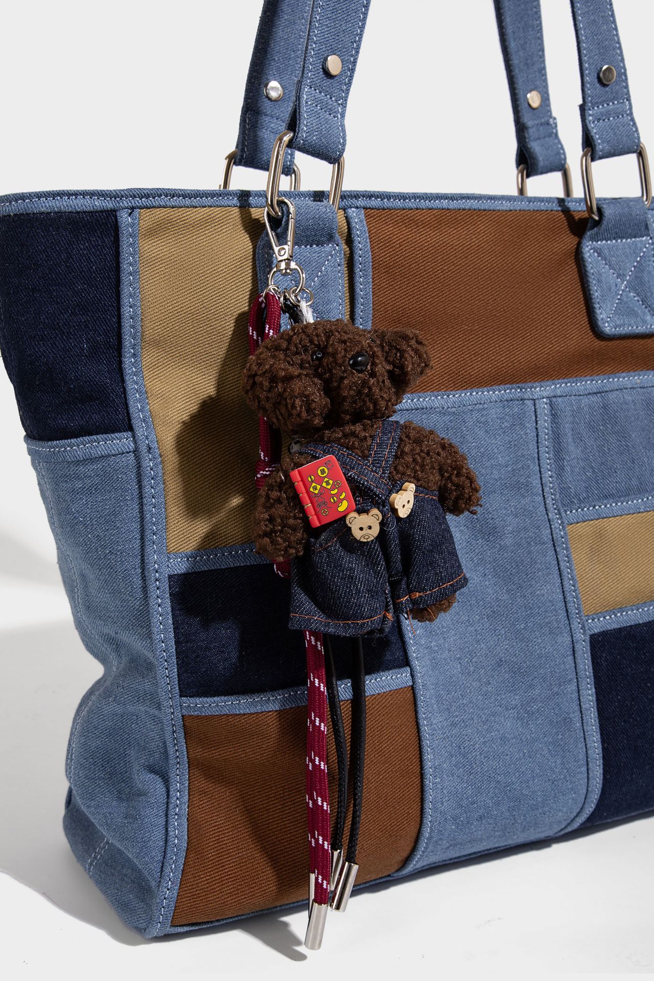 Trendy elements: Contrasting colors, plaid, patchwork