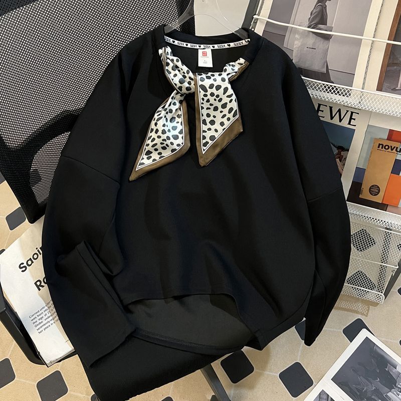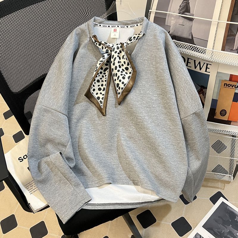 Figure-flattering American-style Vintage Silk Scarf Loose-fit Hoodie For Women