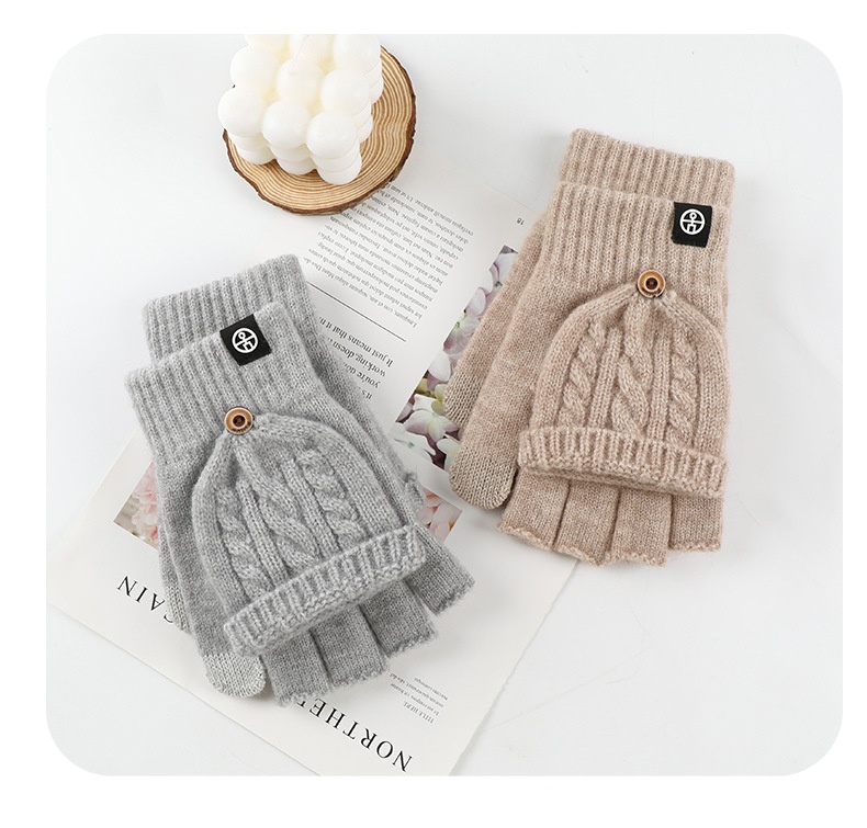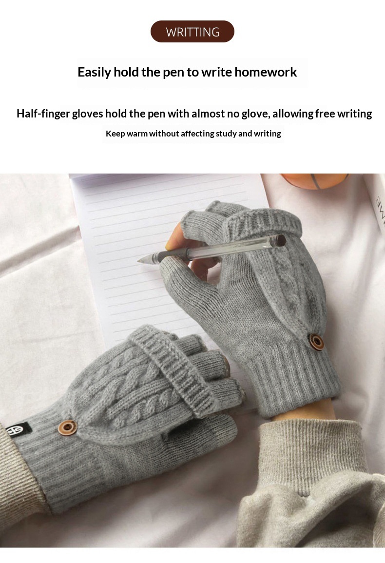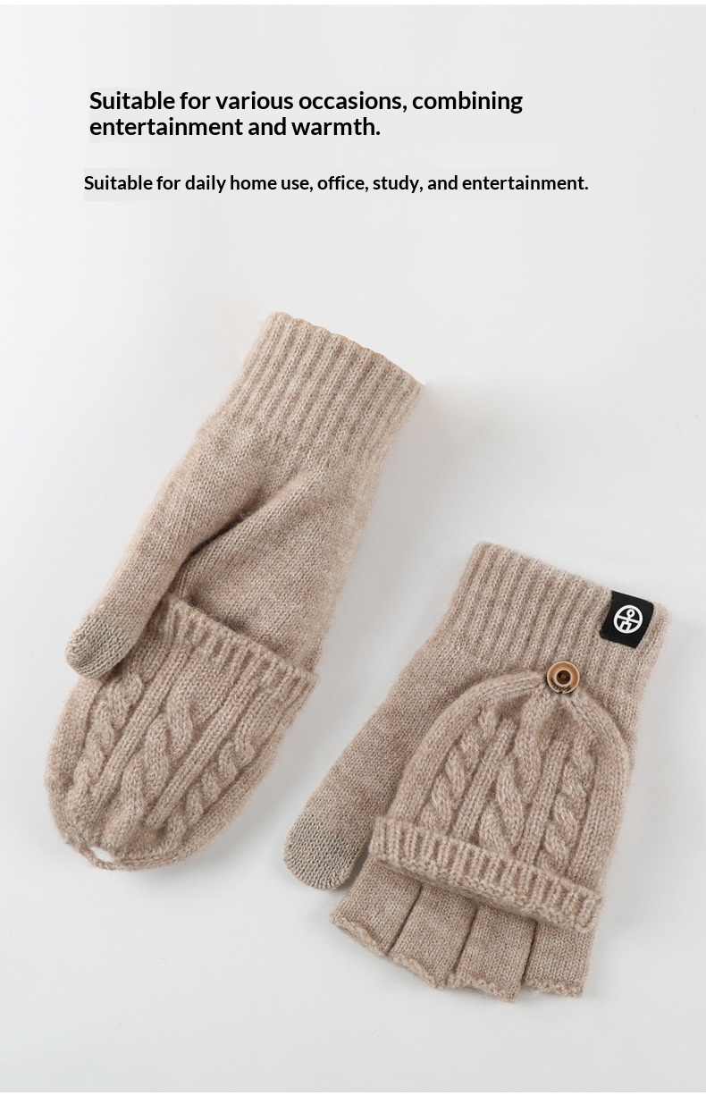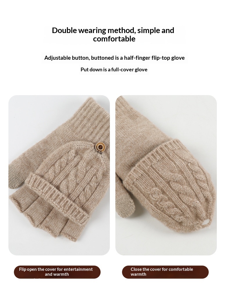 Flip-up Dual-use Half-finger Gloves For Womencold-proof And Warm-keeping