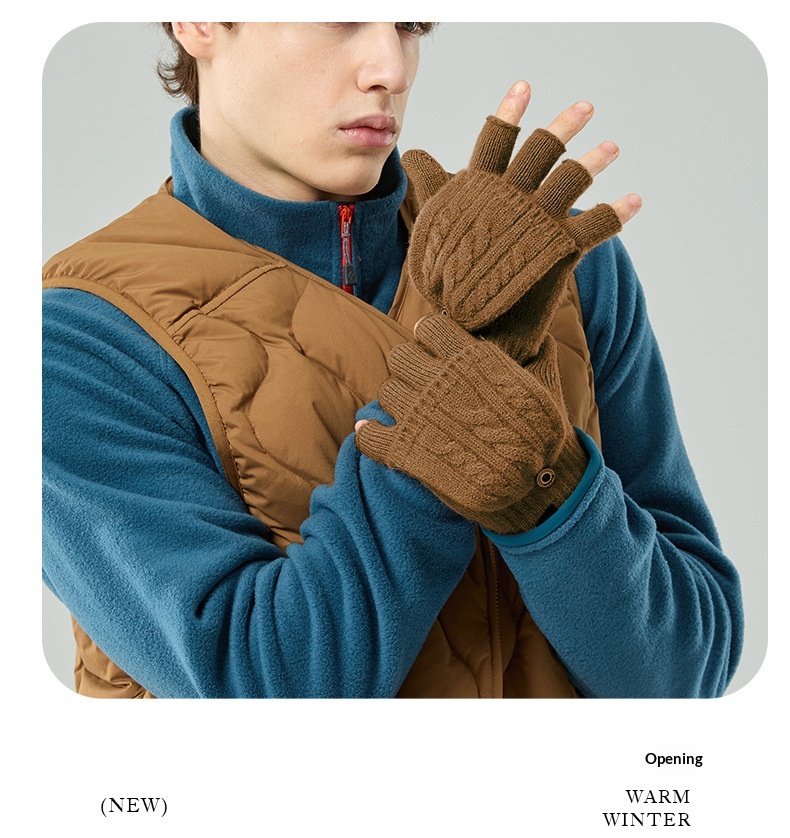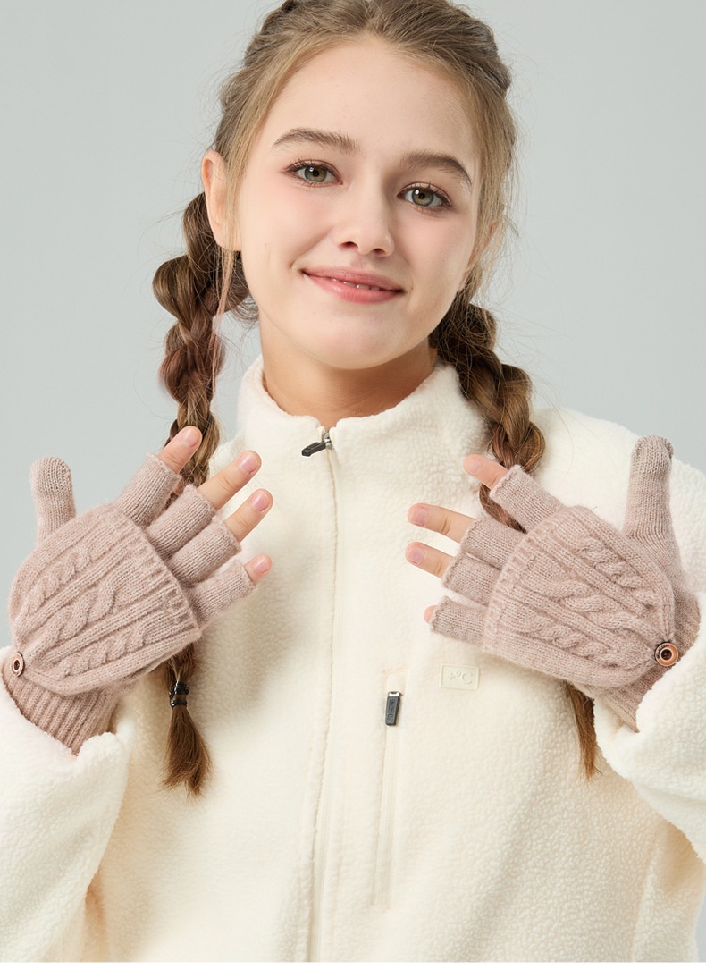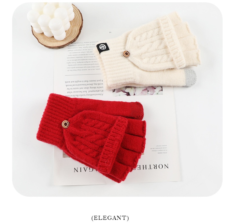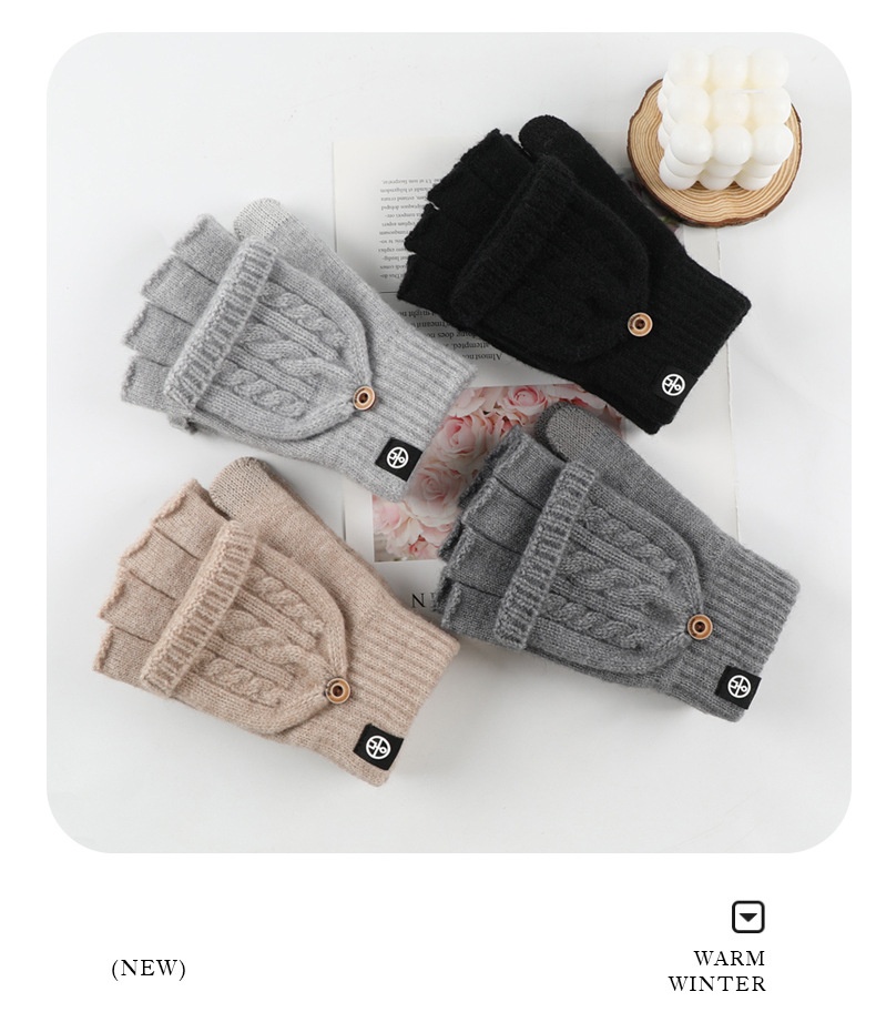 Flip-up Dual-use Half-finger Gloves For Womencold-proof And Warm-keeping