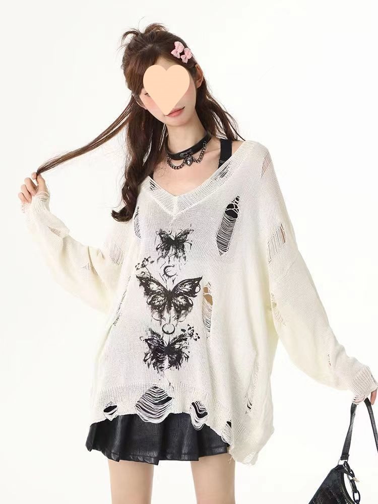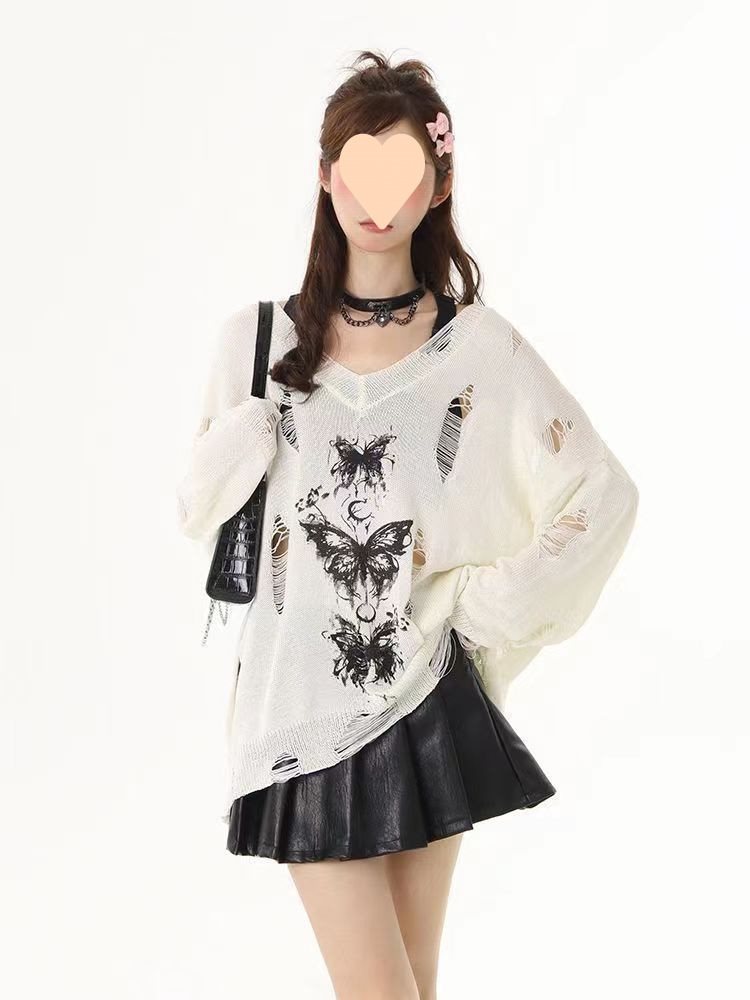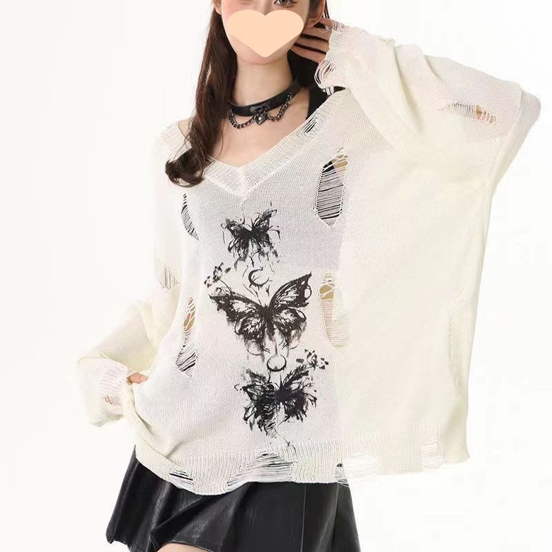 Graffiti Butterfly Hollow-Out Versatile Top For Women