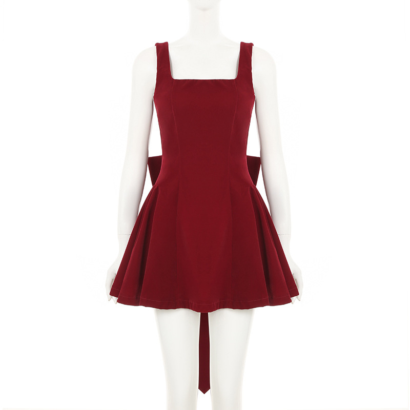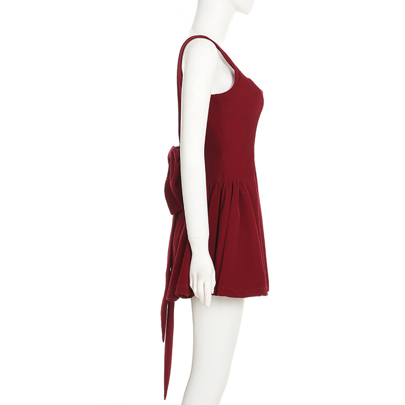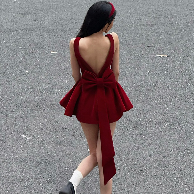Luxurious Open-back Patchwork Bow-knot Vest Dressstylish High-waisted Figure-hugging A-line Mini Skirt