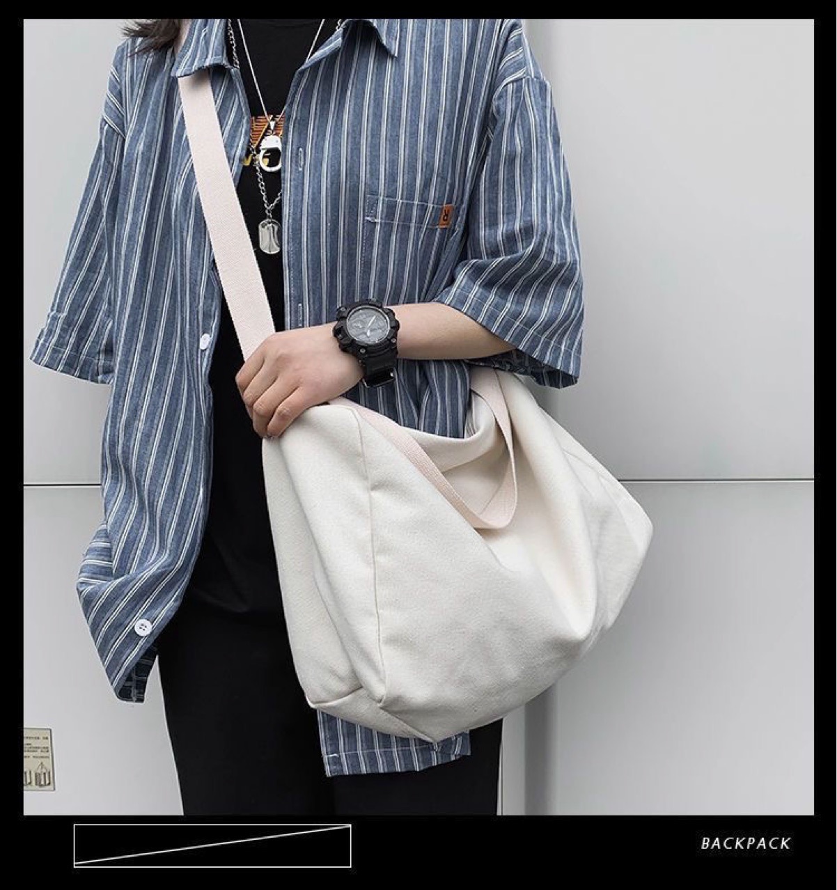 Men's Solid-color Crossbody Canvas Shoulder Student Schoolbag Tutoring Bag