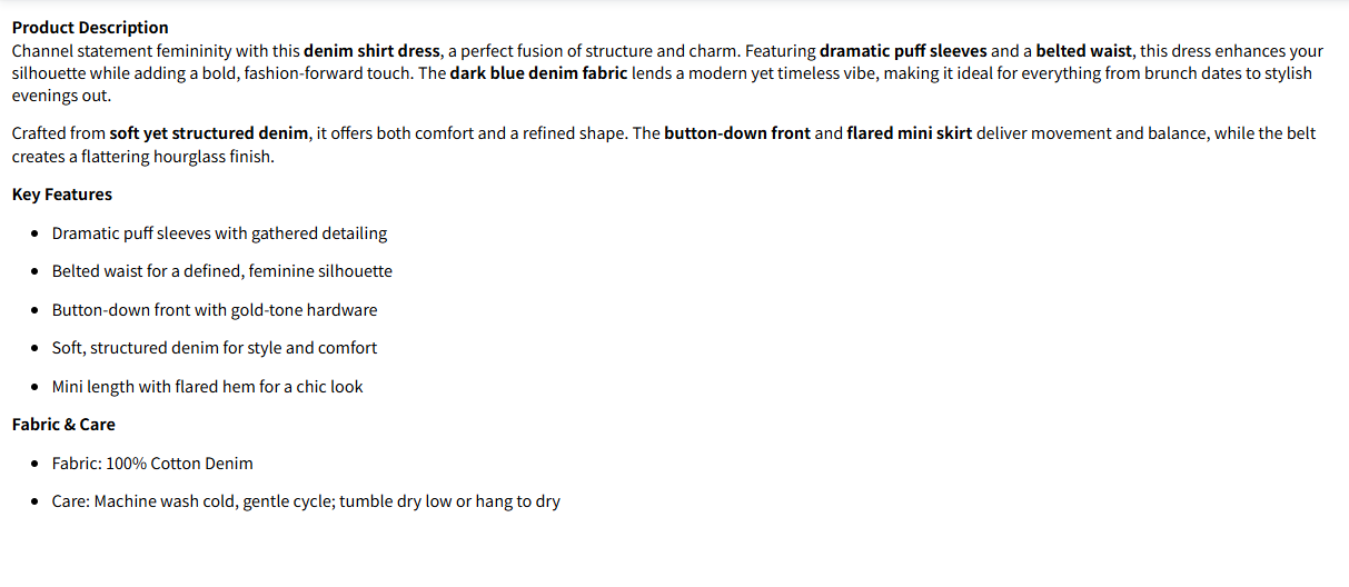 Puff Sleeve Belted Denim Shirt Dress Dark Blue Mini Silhouette