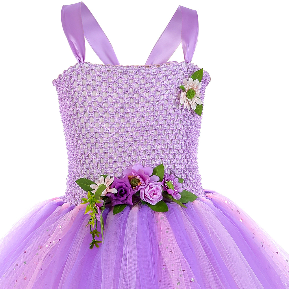 Purple Flower Fairy Elf Girls' Tulle Princess Children's Wings Fairy Role-Play Dress