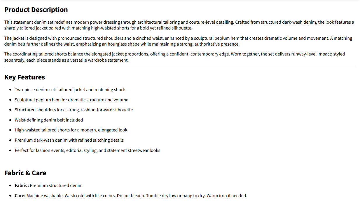 Sculptural Peplum Hem Tailored Denim Jacket & Shorts Set