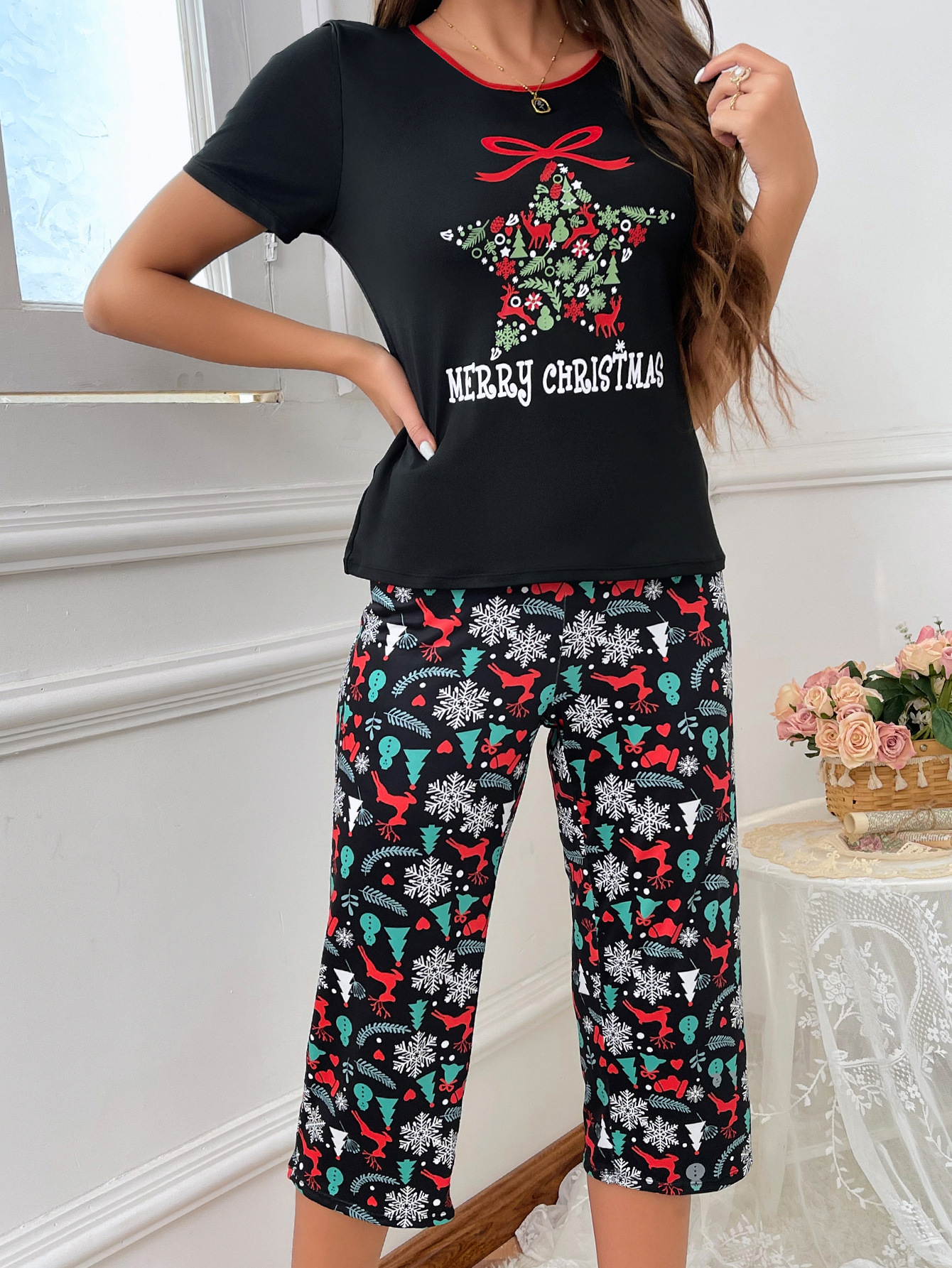 Women's Printed Comfortable Short Top And Shorts Set