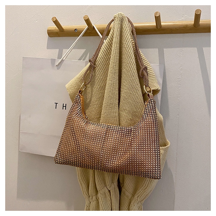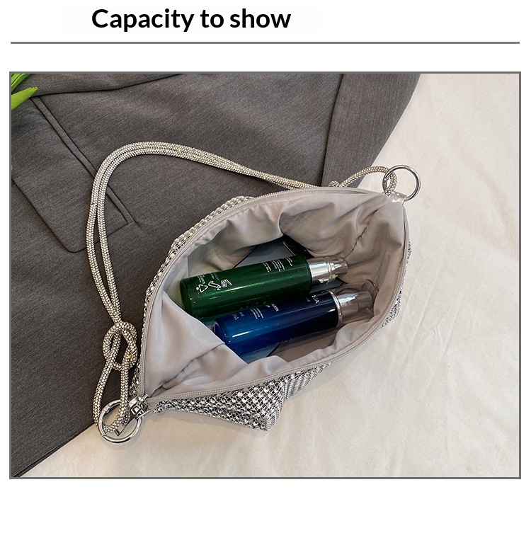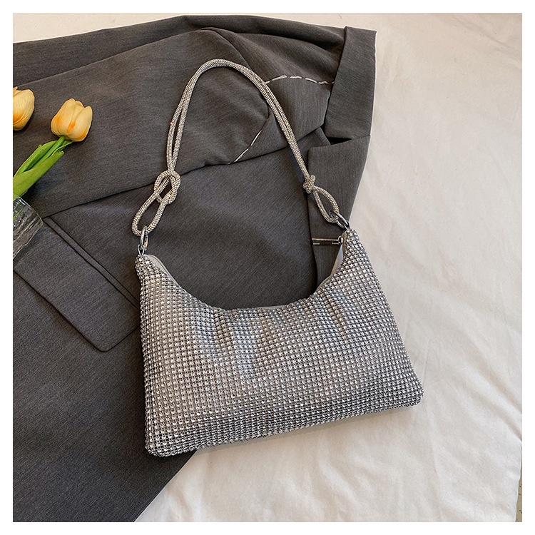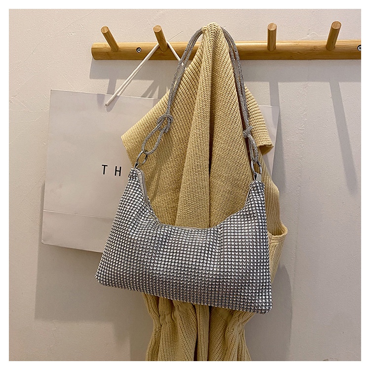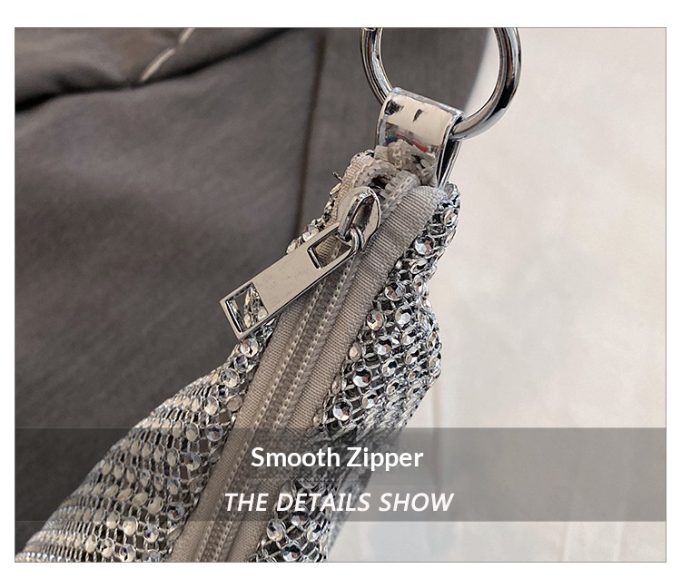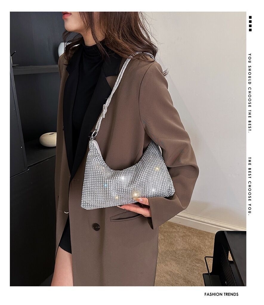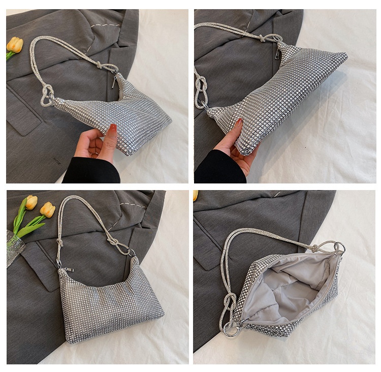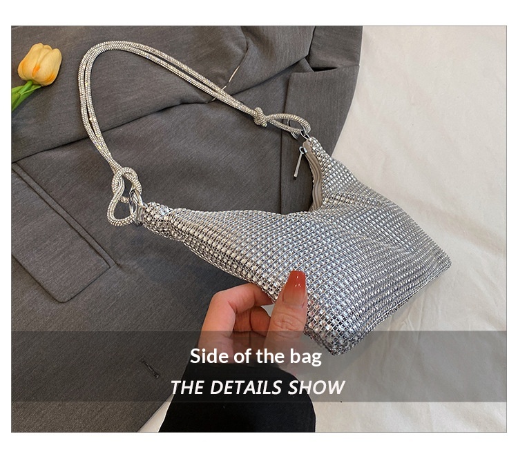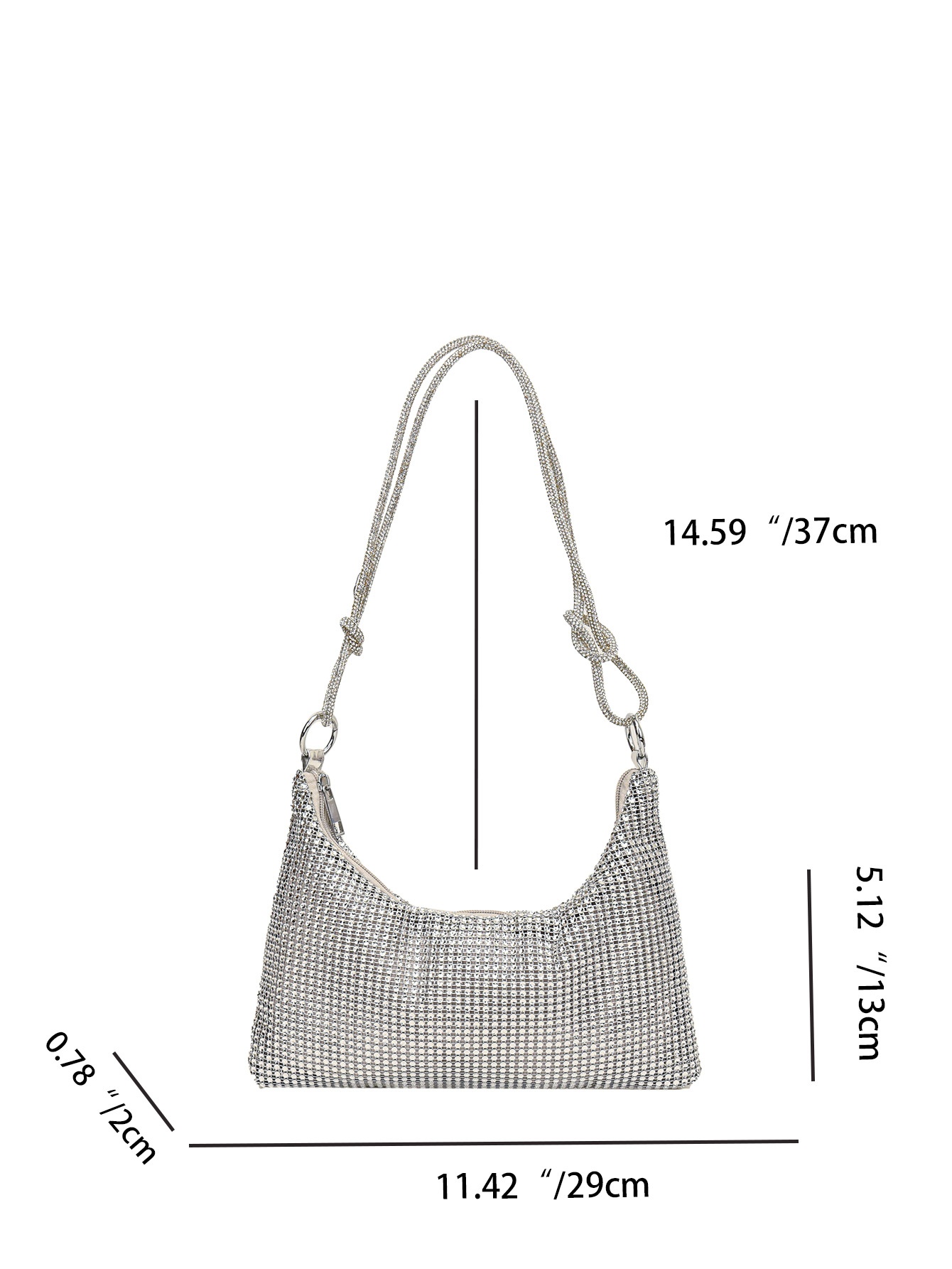 Women's Solid-Color Shiny Faux Rhinestone Zipper-Knotted Shoulder Bag