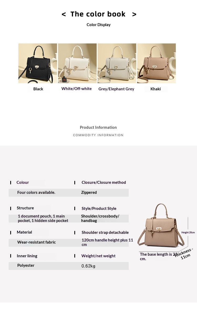 Women's Solid-Colored Casual Large-Capacity Handbag Crossbody Bag
