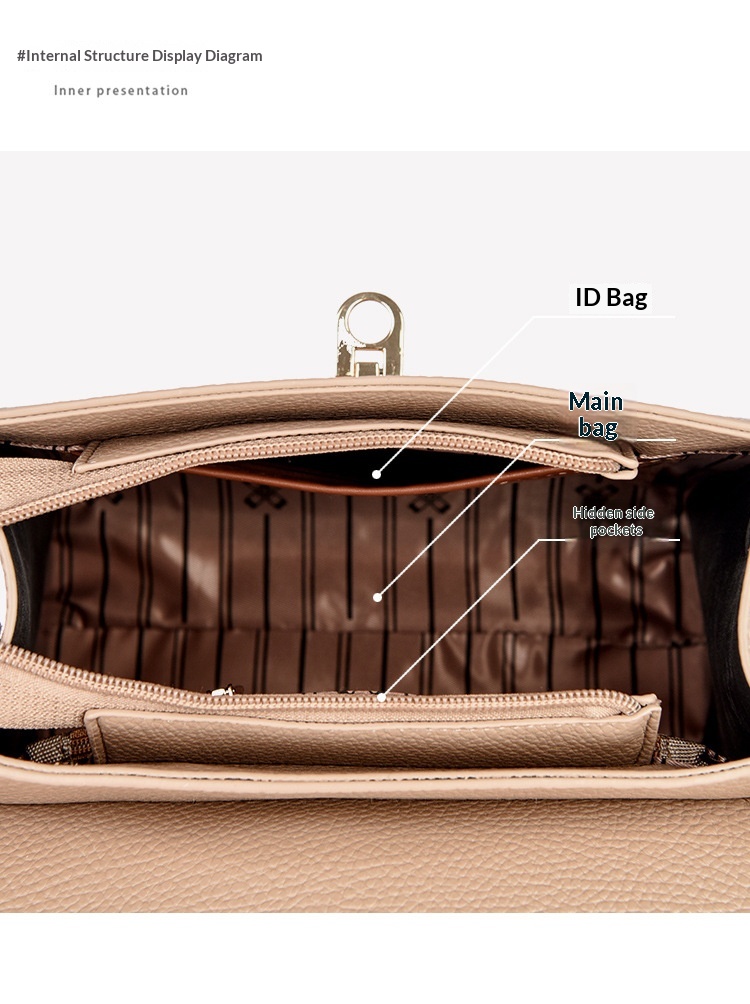 Internal structure: zippered hidden pocket, phone pocket, ID card pocket, compartment with zippered pocket